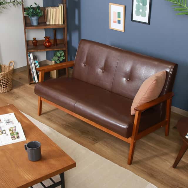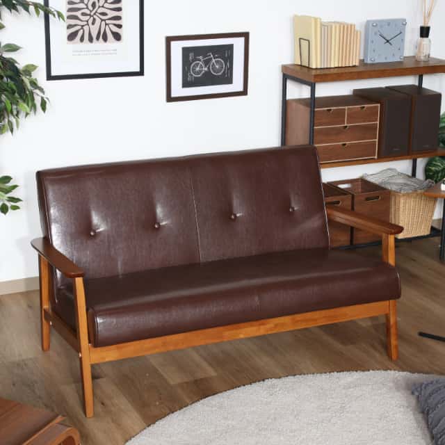 ワンルームにも最適な2人掛けコンパクトソファ。シンプルなデザイン。レトロ感漂うレザーソファー。