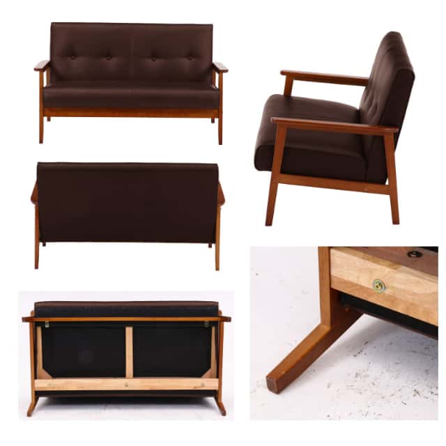| 素材 | ■構造部材:天然木(ラバーウッド) ■表面加工:ラッカー塗装 ■張り材:合成皮革(PU) ■クッション材(座面):ウェービングベルト/ウレタンフォーム ■クッション材(背もたれ):ウレタンフォーム |