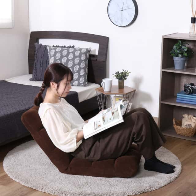 ボリュームたっぷりのフロアチェア。ワンルームにも置きやすいコンパクトサイズです。