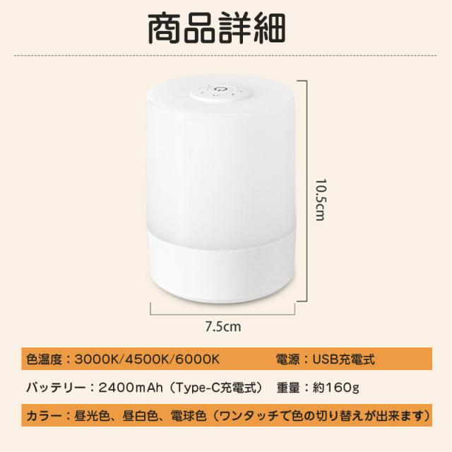 - 光量も長押しで調整できるため良いです! 3パターンの色味も気分でかえれるのも良いです! 充電も光量弱めだとだいぶ長持ちします! この値段でコスパ良だと思います
