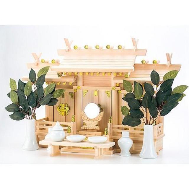 ◇神具セット内容;神棚本体、陶器7点セット、神鏡、八足台、榊造花