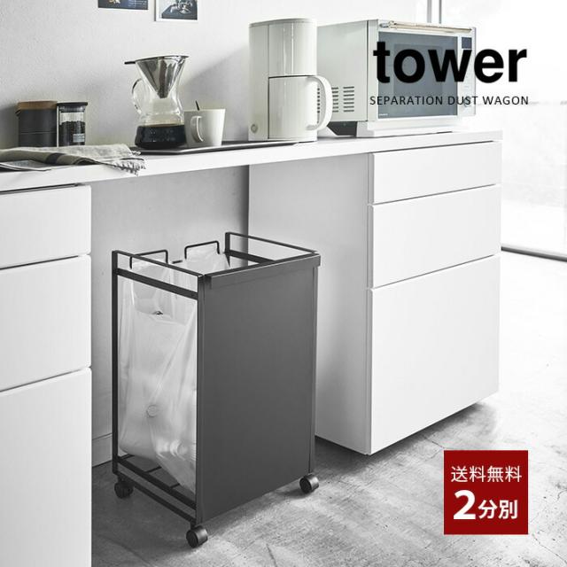 【山崎実業】目隠し分別ダストワゴン 2分別(ホワイト)(ブラック) // YAMAZAKI 山実 モノトーン 雑貨 人気