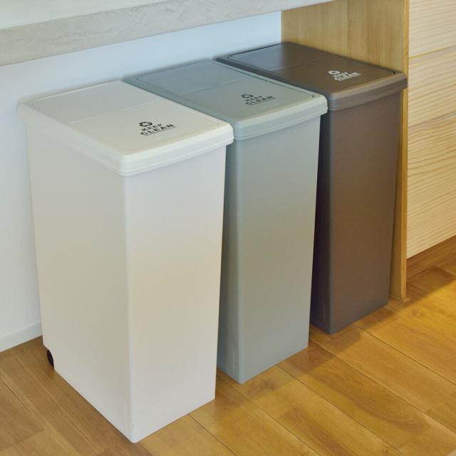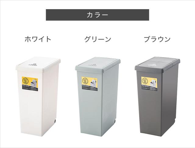 スライドペール45L // ゴミ箱 45L ダストボックス ごみ箱 分別ゴミ箱 屋外 屋内 キャスター付き ポリプロピレン キッチン スライドロック式 スライドペール アースカラー ブラウン グリーン ホワイト スリム 東谷