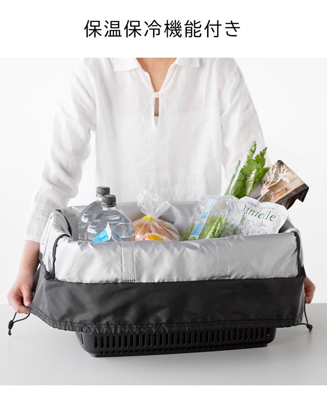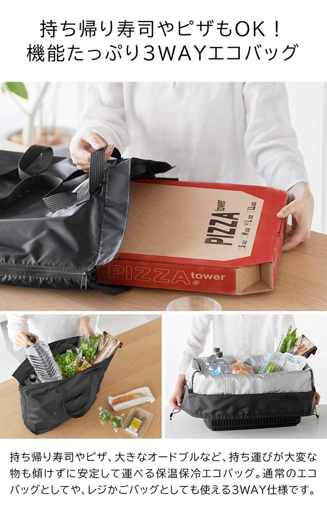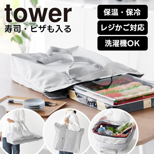 【tower】洗える持ち帰り寿司・ピザが入るレジかごバッグ 2125 2126 ライトグレー ブラック【山崎実業 タワー エコバッグ 大容量 折り畳み 3WAY レジカゴバッグ 保冷バッグ 買い物かごバッグ 保冷できるレジかご用バッグ yamazaki】