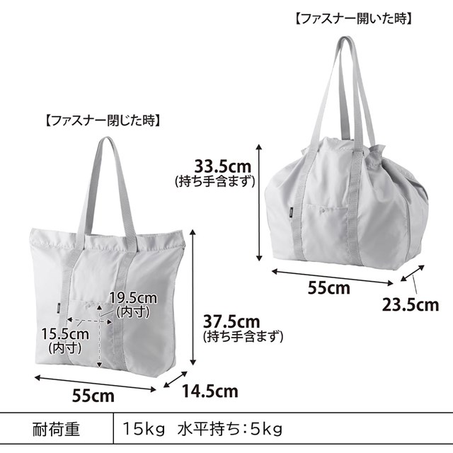 ファスナーを開けばレジかごバッグに。