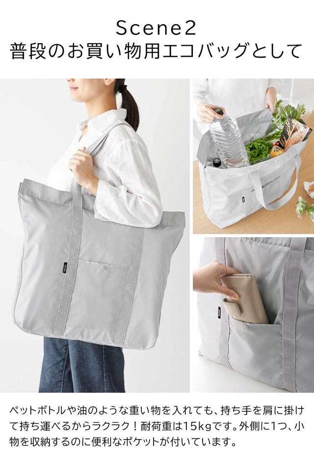ファスナーを閉じた状態では少ない買い物の際のエコバッグとして。