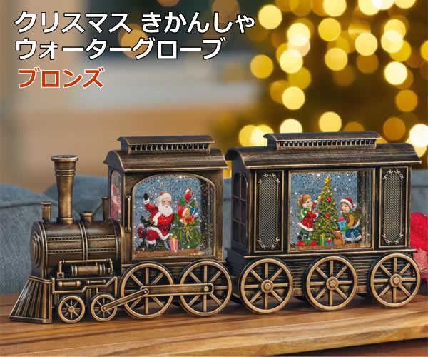 【送料無料】クリスマス きかんしゃ ウォーターグローブ ブロンズ スノードーム ディスプレイ オブジェ 装飾 置物 インテリア デコレーション 機関車 タイマー付き プレゼント コストコ