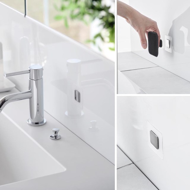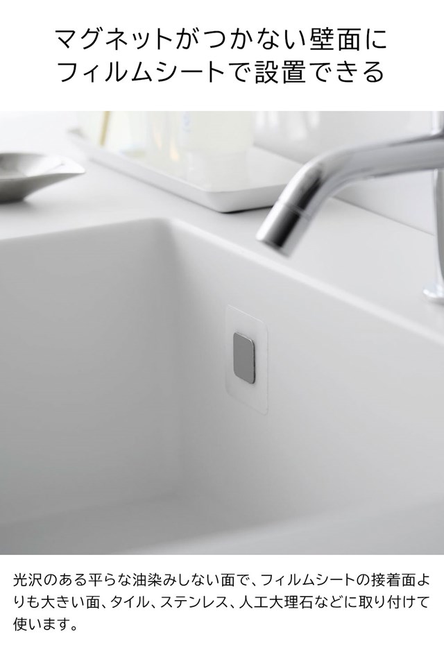 マグネットがつかないタイルや人工大理石の洗面台、陶器にもマグネット製品が設置できます。 |