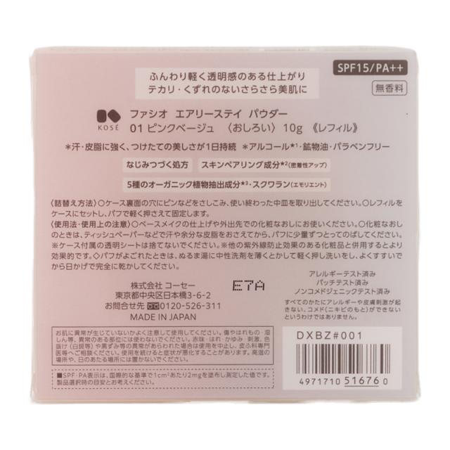 FASIO ファシオ エアリーステイ パウダーレフィル 01 ピンクベージュ 10g 詰め替え用 皮脂プルーフ&タッチプルーフ [ギフトラッピング対応]