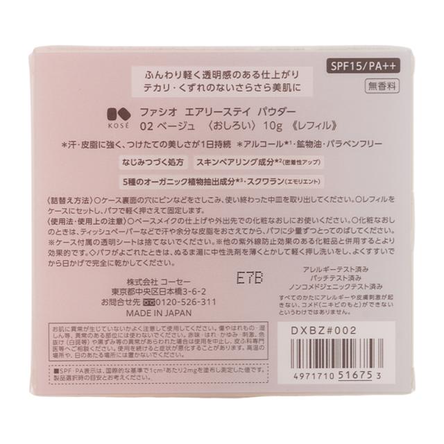 FASIO ファシオ エアリーステイ パウダーレフィル 02 ベージュ 10g 詰め替え用 皮脂プルーフ&タッチプルーフ [ギフトラッピング対応]