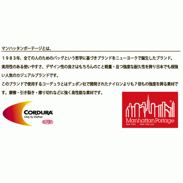| 【ブランド】 | ManhattanPortage マンハッタンポーテージ |