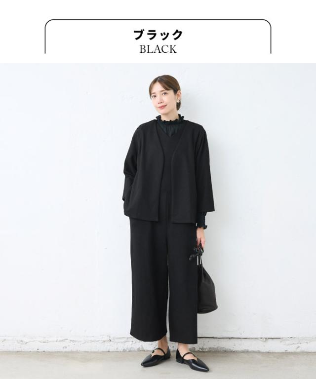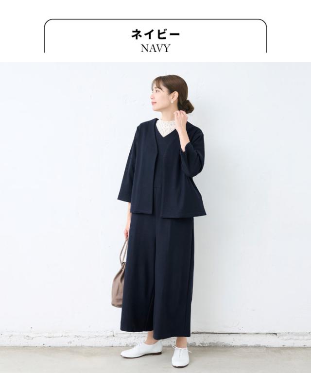[ 卒業式 母 服装 50代 パンツスーツ セレモニースーツ ] 圧縮ウール100% こなれVネックジャケット + サロペット 2点セット / 日本製 30代 40代 60代 きれいめ 上下セット 礼服 七五三 母 ママ 祖母 ストレッチ 入学式 ママスーツ 秋冬 秋 冬 サロペット