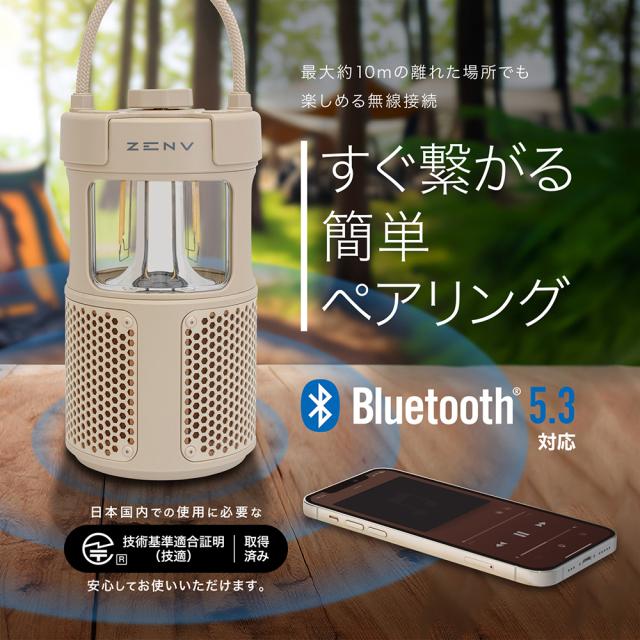 | 障害物や距離による接続の途切れを最小限に抑え、バッテリー消費を抑えつつ、長時間のワイヤレス接続が可能なBluetooth 5.3にに対応しており、最大約10m離れた場所でも無線接続が可能なので、広いキャンプサイトでも気にせず楽しめます。 |