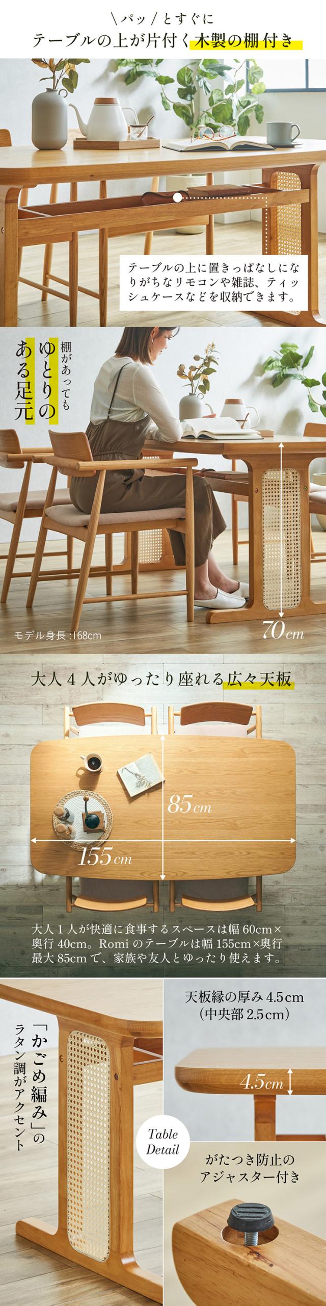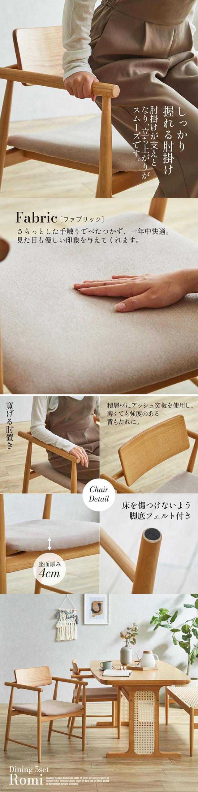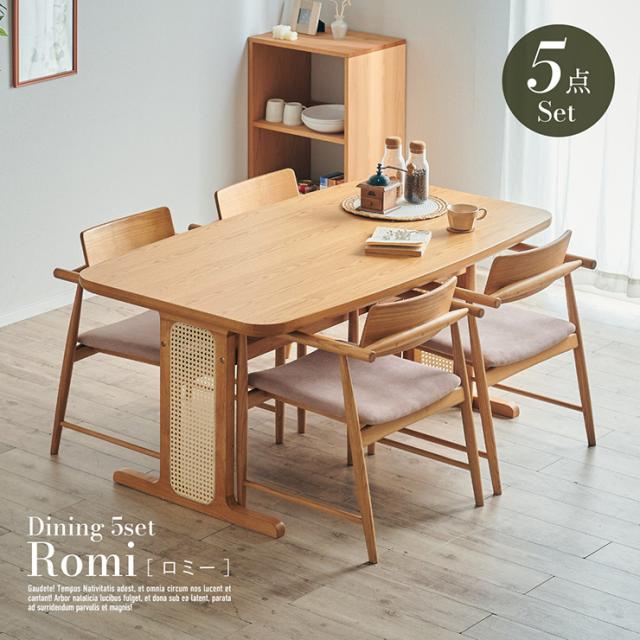 ダイニングテーブルセット 4人掛け ダイニングテーブル ダイニングチェア ダイニング 5点セット Romi(ロミー) テーブル 長方形 食卓テーブル 食卓椅子 4脚 チェア 天然木 ナチュラル ラタン おしゃれ