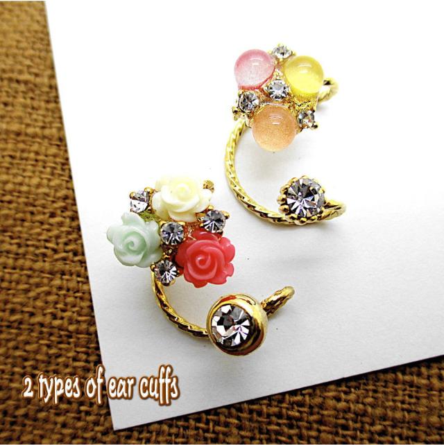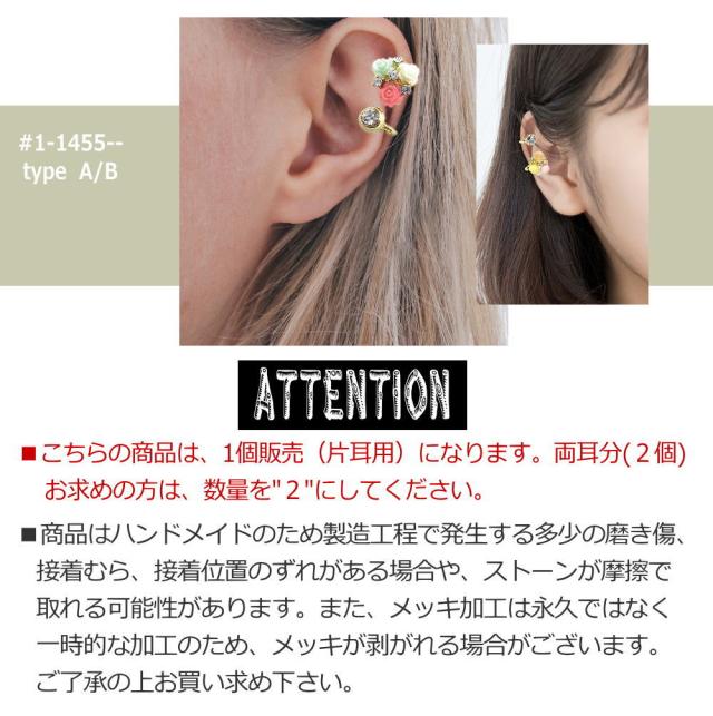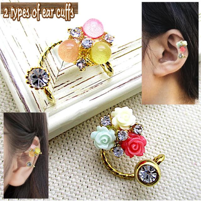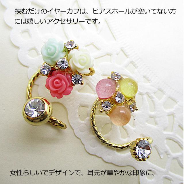 イヤーカフ イヤーカーフ ゴールド 金色 花 フラワー CZ ラインストーン ビジュー イヤーカフス 耳 はさむ 女性 レディース アクセサリー フェイクピアス 1-1455