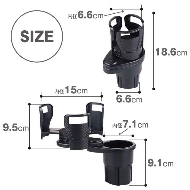 マルチカップホルダー 車 ドリンクホルダー 2in1 多機能 車載 カップホルダー 車内 車用 回転 ダブルカップホルダー 車載ホルダー ダブルドリンク 車用品 カー用品 ドリンク カップ おしゃれ 黒 汎用 増設 2口 car-holder02 agesugi_ssp
