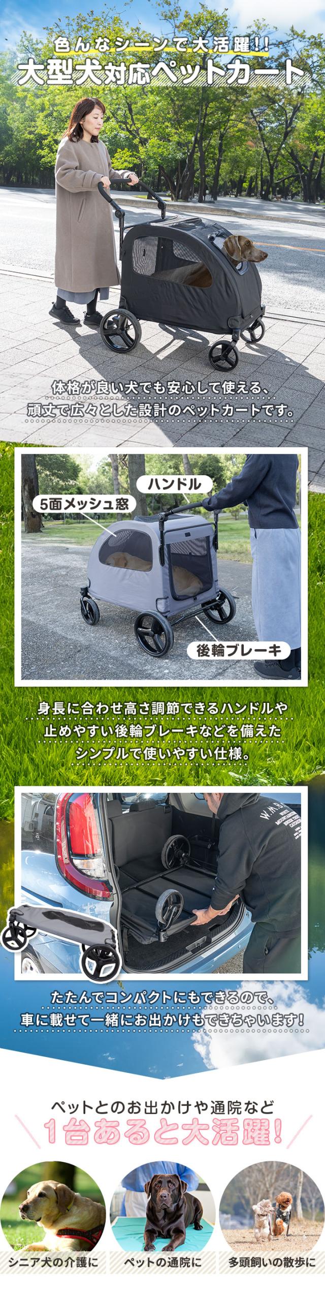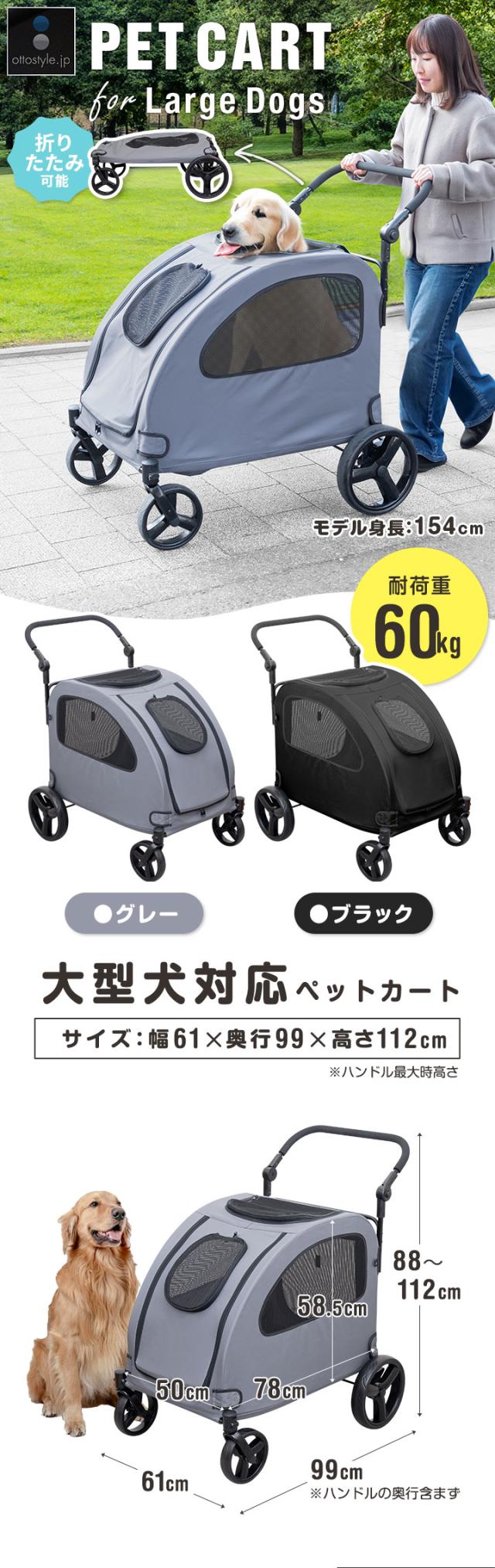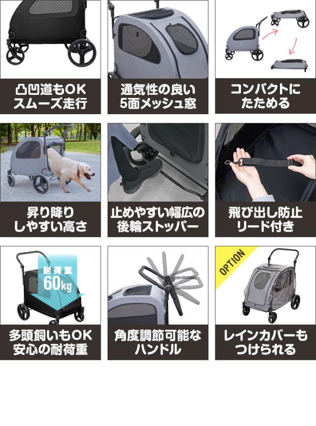 ペットカート 大型犬 中型犬 多頭 大型犬対応 折りたたみ 4輪 耐荷重60kg ドッグカート 犬用カート 犬用ベビーカー 犬用バギー 雨 雨カバー ブレーキ ストッパー付き ペットバギー 折り畳み 老犬 犬 カート ペット ペット用品 1年保証 送料無料