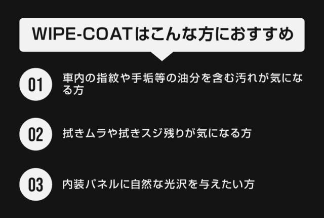 車内専用コーティングクリーナー WIPE-COAT 100ml 手垢や指紋などの汚れを一網打尽 防汚効果に優れた車内専用のコーティング剤