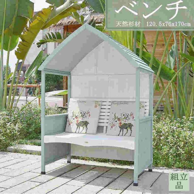 ベンチ あずまや 亭 屋根 屋外 庭 ガゼボベンチ 日よけ 雨よけ 天然杉材 ダブル カジュアル 120.5*76*170cm 組立品