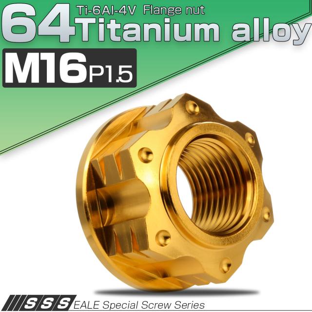 チタンナット M16 P1.5 フランジ付ナット 六角ナット スターホール ナット セレート無し ゴールド JA1867