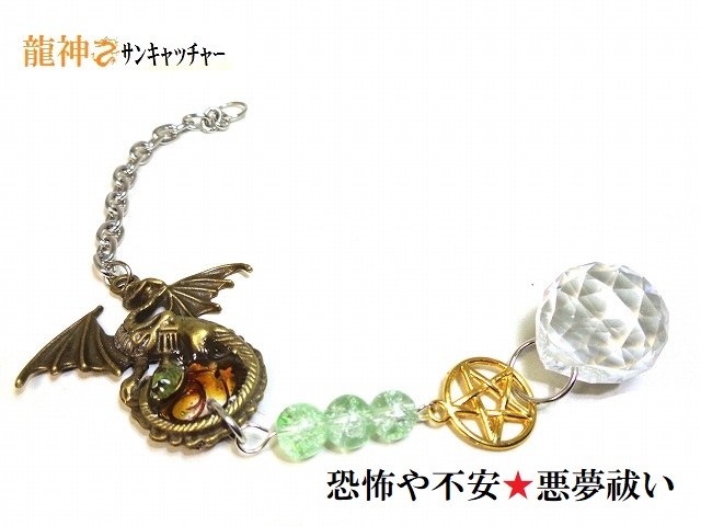 悪夢払い・不安や恐怖解消・リラックス・魔除★スモーキークォーツ・水晶・ペリドッド★鬼門・裏鬼門・殺気・波動・気の流れ★オルゴナイト★五芒星★龍神サンキャッチャー★龍神★サンキャッチャー★パワーストーン★護符(霊符)