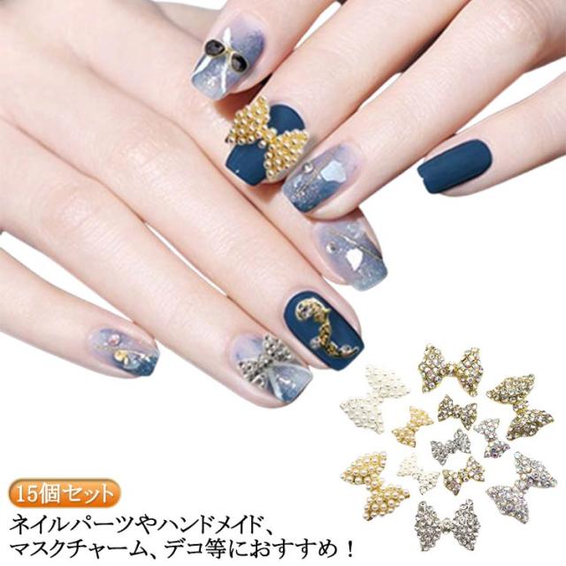 ネイルパーツ 15個セット デコ ひらひらリボン クリスタルパーツ デカリボン おおきめリボン 地雷系 ビッグリボン ラインストーン ネイルパーツ ネイルジュエリー ガラスストーン チャーム