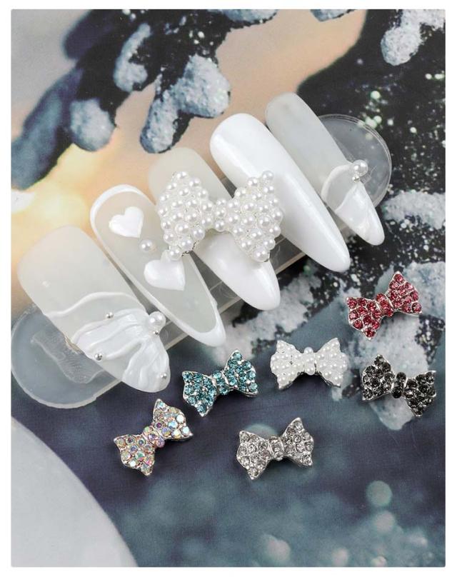 デカリボン ネイルパーツ 地雷系 パールリボン デコ クリスタルパーツ おおきめリボン 10個セット ひらひらリボン ラインストーン ネイルジュエリー ネイルパーツ ガラスストーン チャーム
