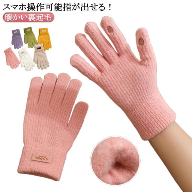 裏起毛 スマホ操作可能 手袋 冬 秋 スマホ対応 可愛い レディース 指が出る スマホ手袋 指穴 あり 穴あき 暖かい 暖かい てぶくろ スマートフォン対応 防寒 防風 5本指 暖かい ニット 韓国