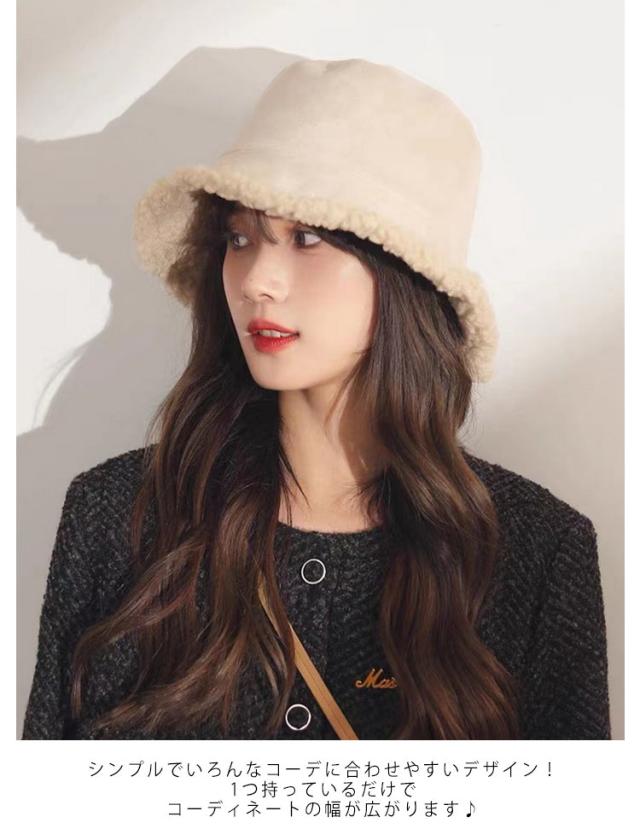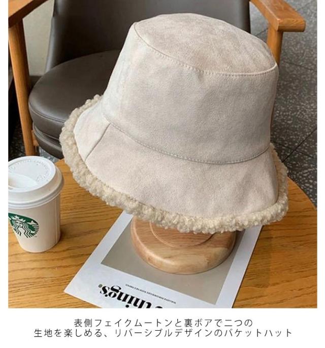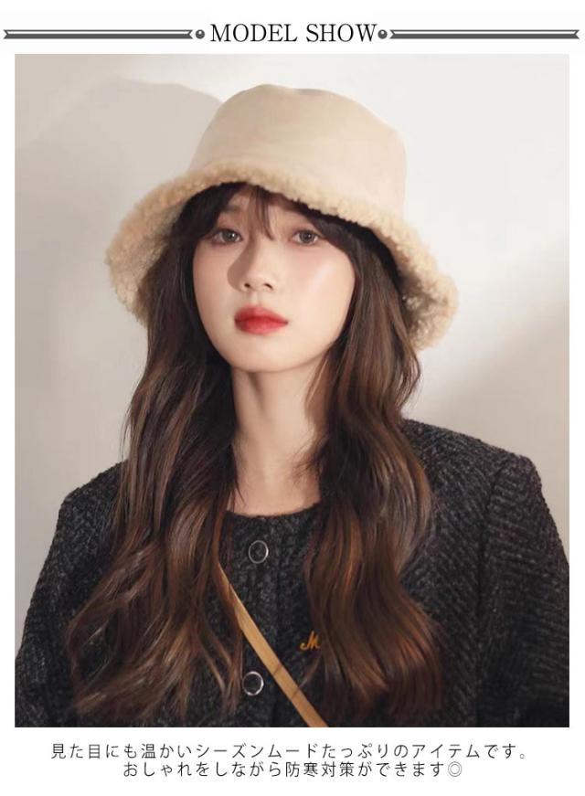 ボア レディース あったか 小顔 ハット バケットハット ムートン風 折りたたみ 暖かい 防寒 軽い ボア帽子 もこもこ 洗える バケハ リバーシブル ふわふわ 秋冬 おしゃれ 韓国 プレゼント
