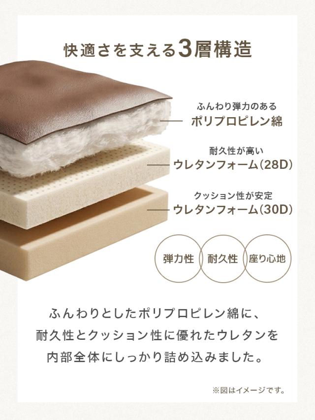 | 素材 | 表地:PUレザー 中材:PP綿、28Dウレタン、30Dウレタン 脚部:スチール |