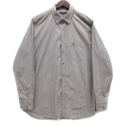 【中古】バーバリー ロンドン BURBERRY LONDON ストライプ ドレスシャツ ワイシャツ 長袖 ホースマーク ブラウン LL A1M44-212-56 メンズ