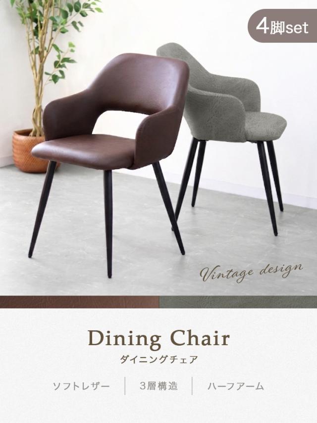 ダイニングチェア 4脚セット イス 肘付き 3層構造 もっちり クッション ヴィンテージ デザイン チェア ダイニングチェアー 疲れにくい ダイニング チェアー PUレザー 防サビ レザー スチール おしゃれ リビングチェア ビンテージ ひじ掛け 肘付 椅子