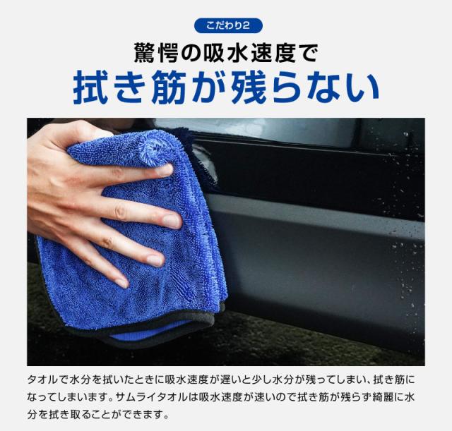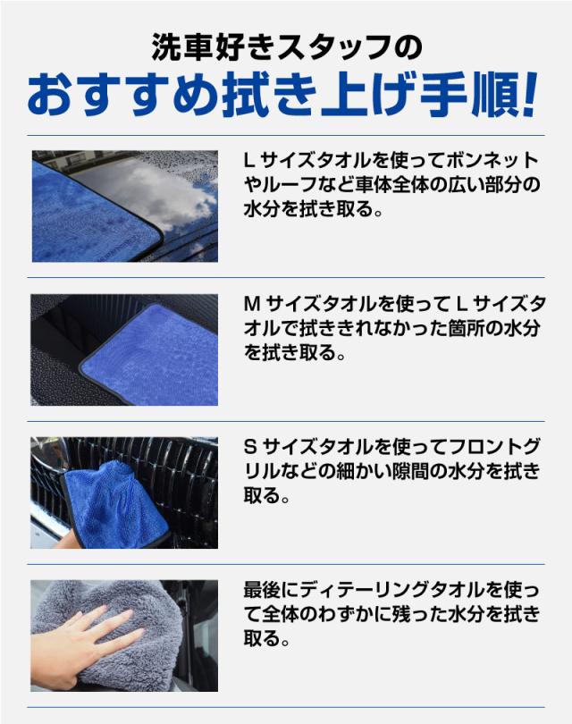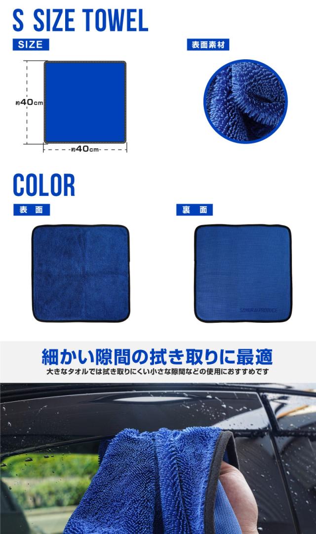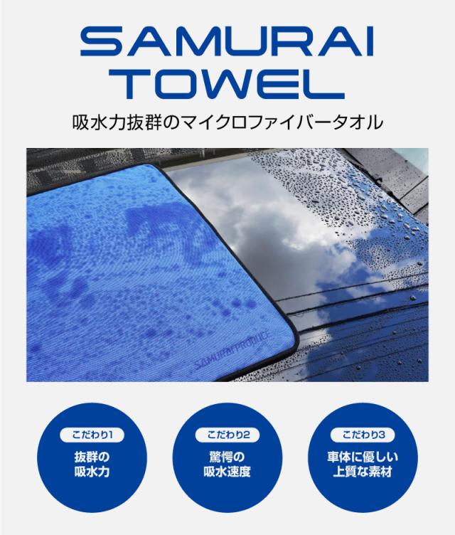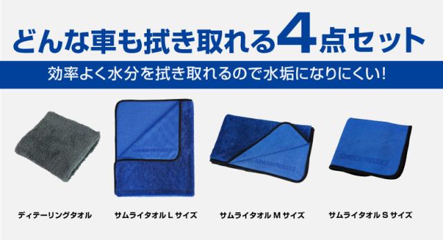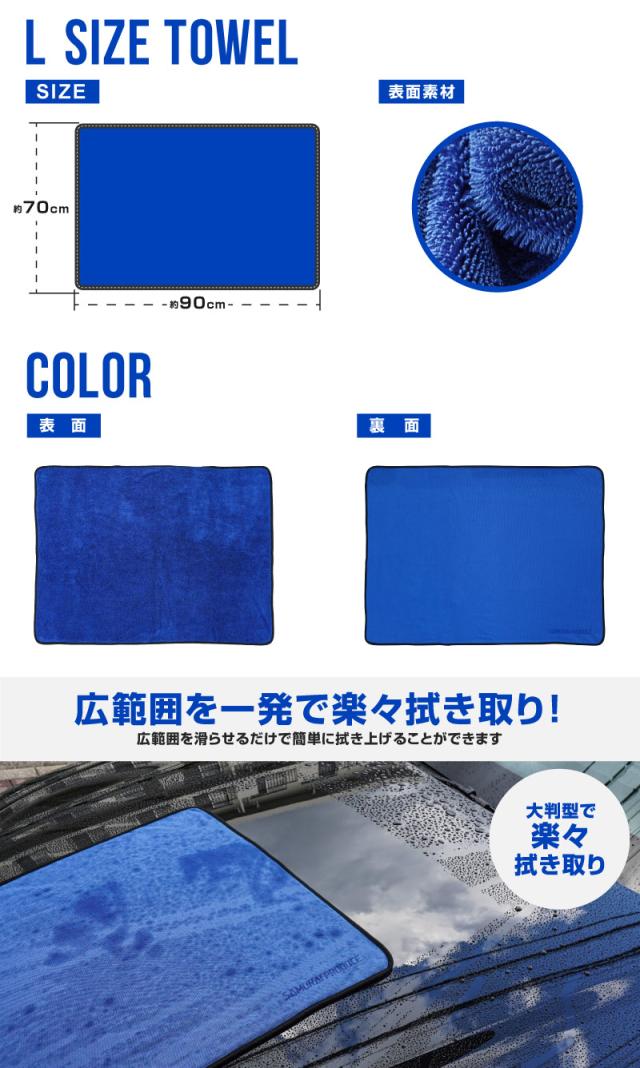 サムライプロデュース 超吸水 サムライタオル 大判 Lサイズ 70cm×90cm & Mサイズ 45cm×75cm & Sサイズ 40cm×40cm ブルー & ディテーリングタオル 40cm×40cm 4枚セット 洗車キズが付きにくい柔らかな手触りで安心 洗車の必需品 洗車タオル