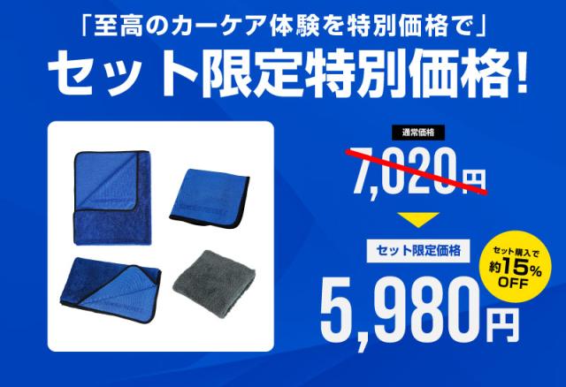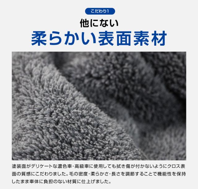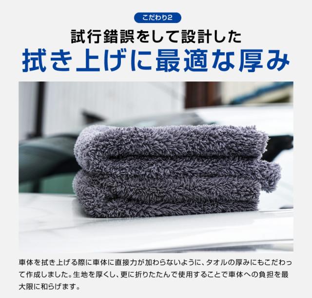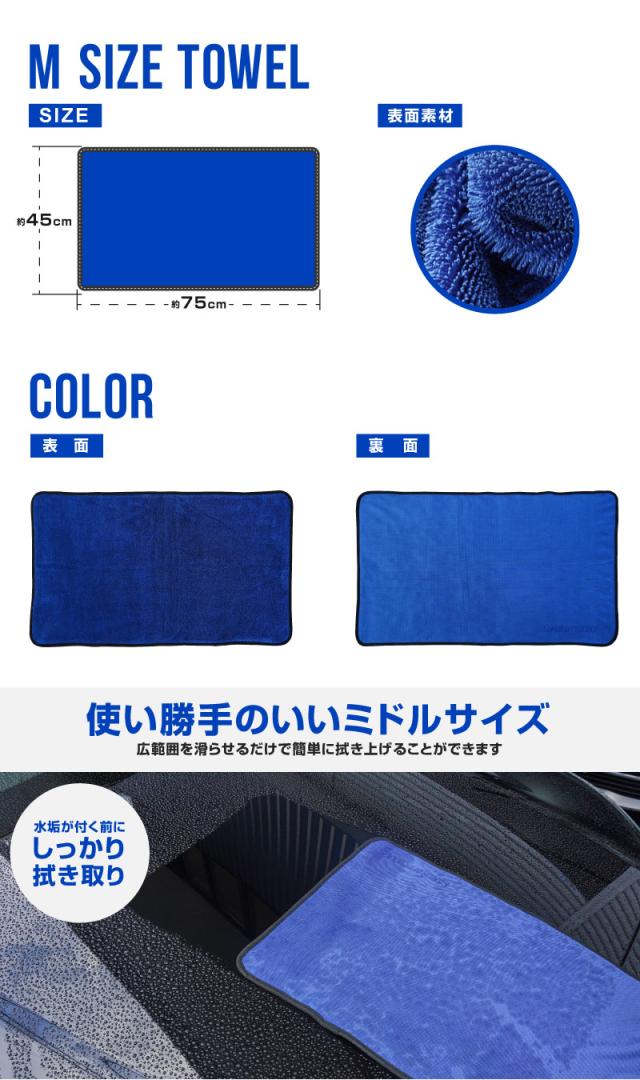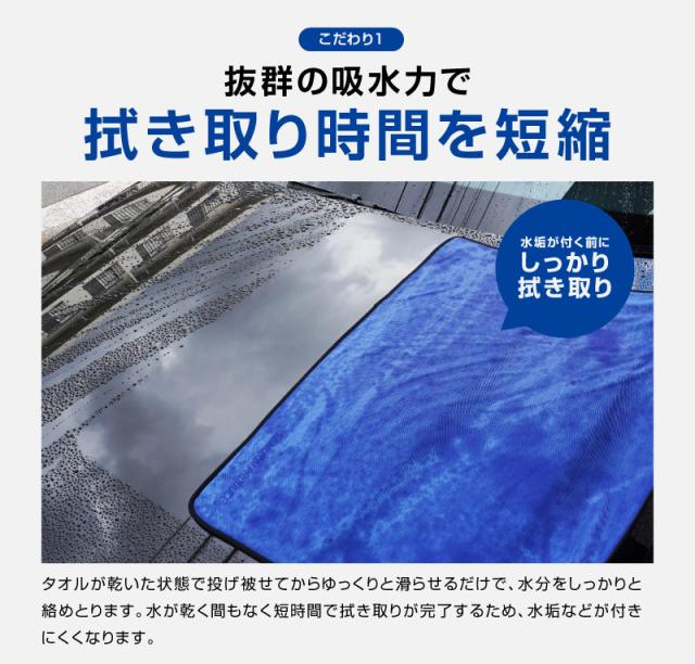 大きなマイクロファイバータオル1枚で絞ることなく車体全体のほとんどの水分を拭き上げる事ができます。