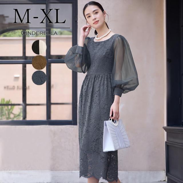 ドレス パーティードレス レディース ワンピース ロング ロングワンピース レース 総レース きれいめ シンプル 長袖 七分袖 大きいサイズ 20代 30代 40代 膝下 エレガント スタイルアップ 大人 ママ フォーマル 着心地 上品 結婚式 二次会 演奏会 謝恩会 同窓会 イ