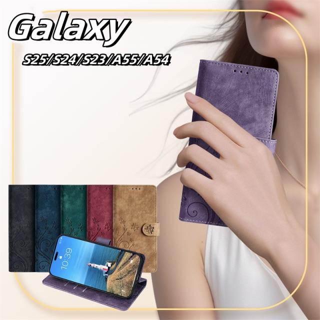 Galaxy S25 S24 ケース S23 Plus Ultra FE A54 A55 手帳型ケース 花柄 蝶柄 6色 財布付きデザイン 耐衝撃 マグネット スタンド機能付き カード収納 PU ソフトTPU |