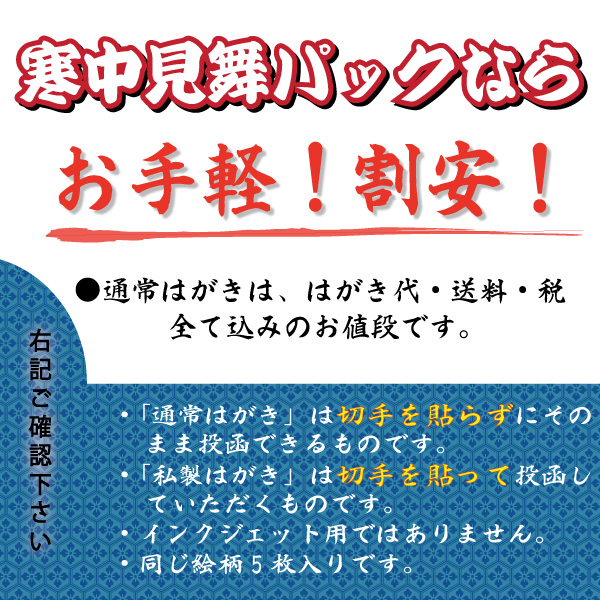 【送料無料】 寒中見舞い 寒中見舞パック 5枚 通常はがき 私製はがき 2026年 差出人なし かわいい イラスト