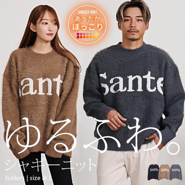 ニット メンズ セーター ブランド シャギーニット 大きいサイズ おしゃれ もこもこ ほっこり シンプル SANTE 長袖 大きいサイズ 暖かい あったか モヘア モヘヤ M L CavariA 20代 30代 40代 ユニセックス 女性 女 男性 男 服 秋 冬 秋冬 秋服 ファッション [CARE24-52]