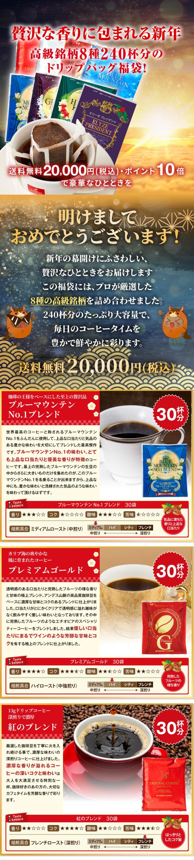 焙煎したて コーヒー豆 ドリップコーヒー 初売り 限定 新年を彩る8種の大満足福袋 240杯分 飲み比べ セット 13Drip 澤井珈琲