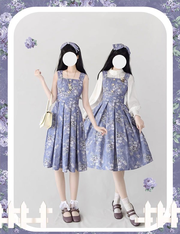 ロリータ ワンピース 花柄 レディース ゴスロリ ミモレ丈 クラロリ リボン 冬服 Aライン ハイウエスト レトロ風 クラシカル 上品 長袖 コスチューム 衣装 コーディネート 日常着 通学 通勤 お出かけ 仮装 秋冬 パーティ イベント 大きいサイズ da643m4m4m6