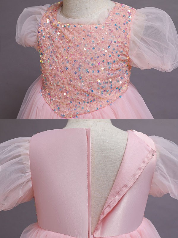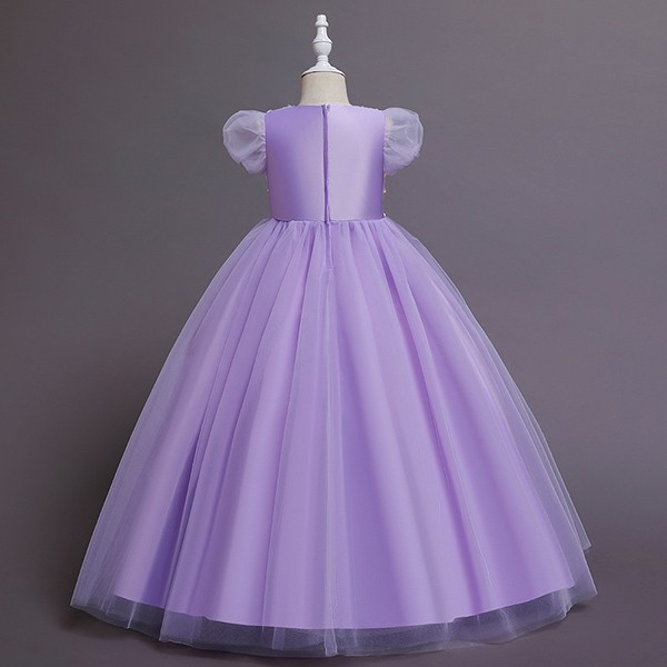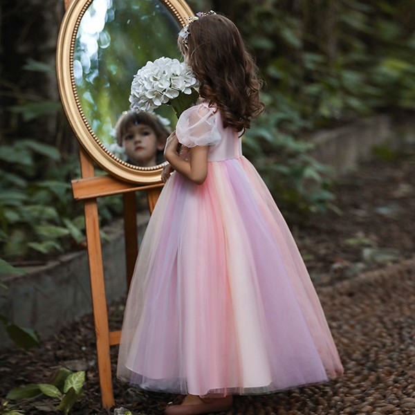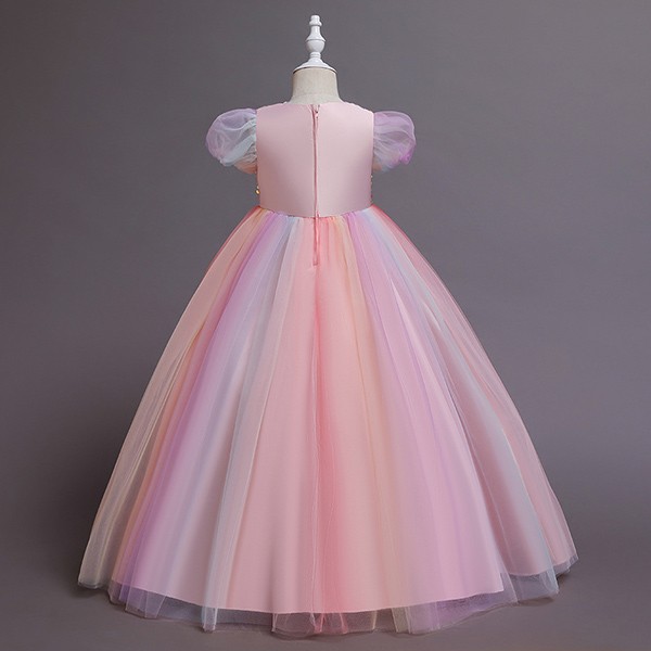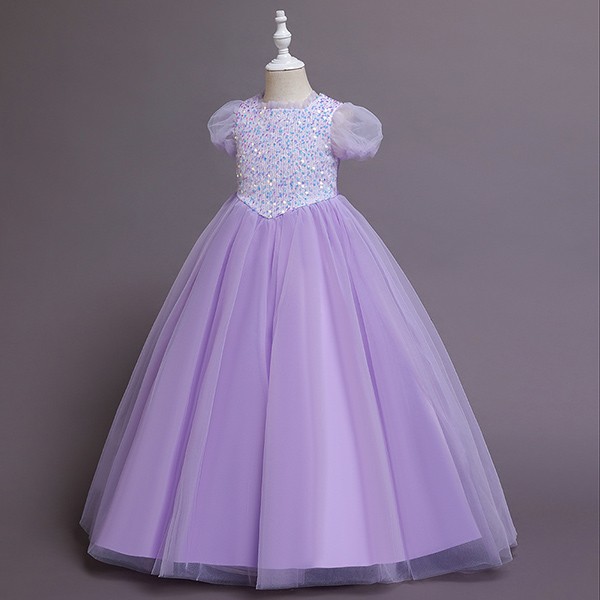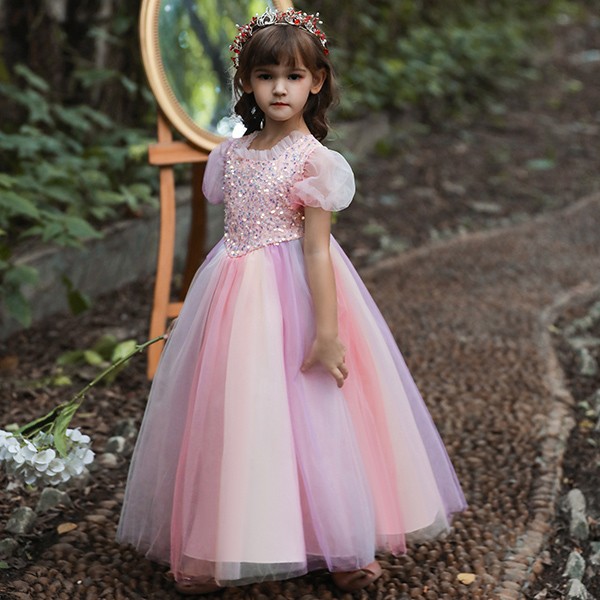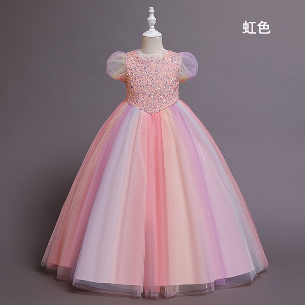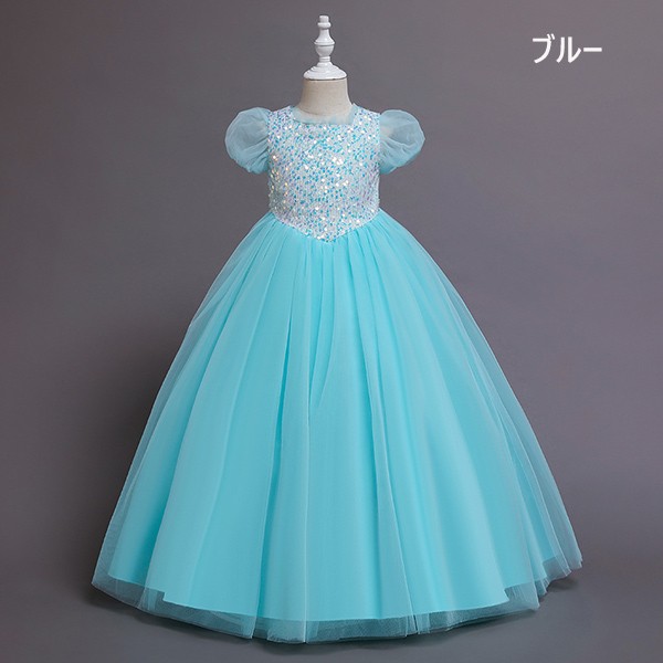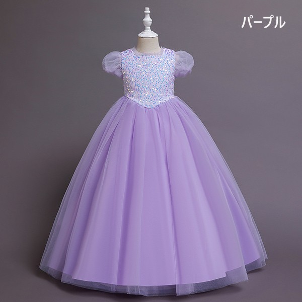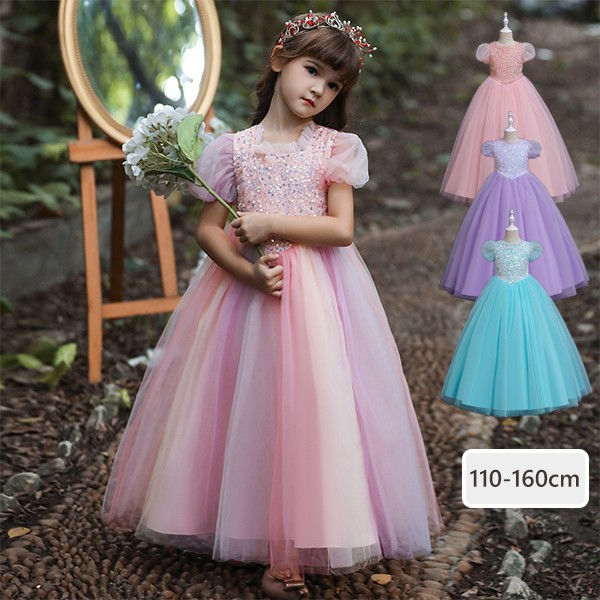 【110-160cm】キッズドレス 子供ドレス 女の子 半袖 スパンコール キラキラ プリンセス ロング フロアレングスドレス ハロウィン 演出服 演奏会 発表会 結婚式 ピンク 虹色 パープル ブルー dd032m5m5m6