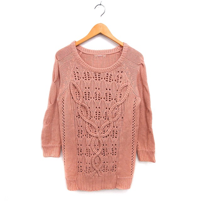 【中古】ダズリン dazzlin ニット セーター ケーブル編み リブ ラグランスリーブ ボートネック 長袖 F ピンク /NT14
