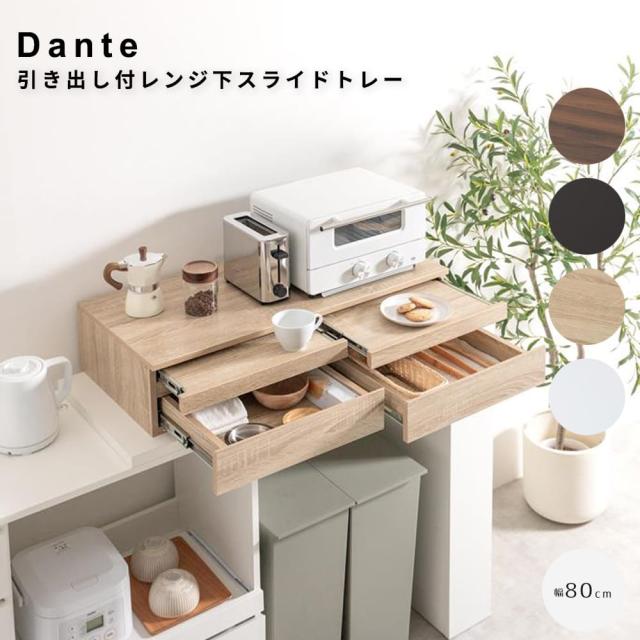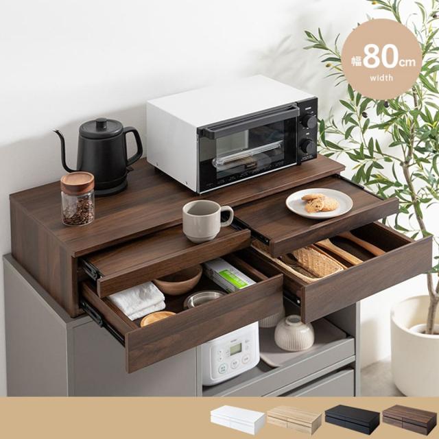 引き出し付レンジ下スライドトレー 幅80cmタイプ レンジ下収納 レンジ台 レンジ下スライドテーブル スライドトレー レンジ下