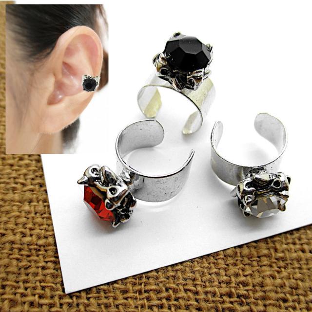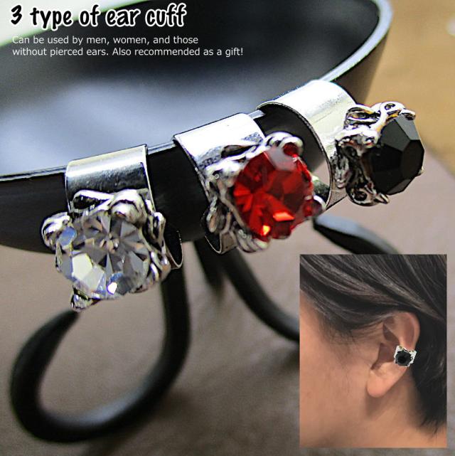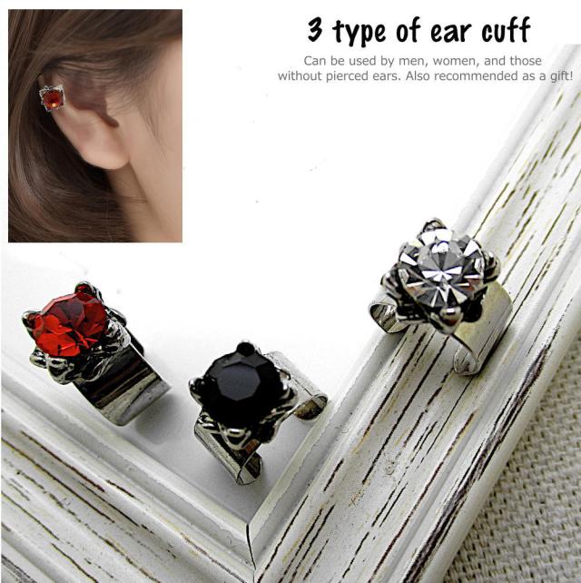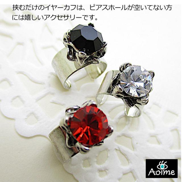 イヤーカフ イヤーカーフ CZ ストーン 赤 黒 透明 レッド ブラック クリア イヤーカフス 耳 はさむ メンズ レディース 男性 女性 アクセサリー 1-1457