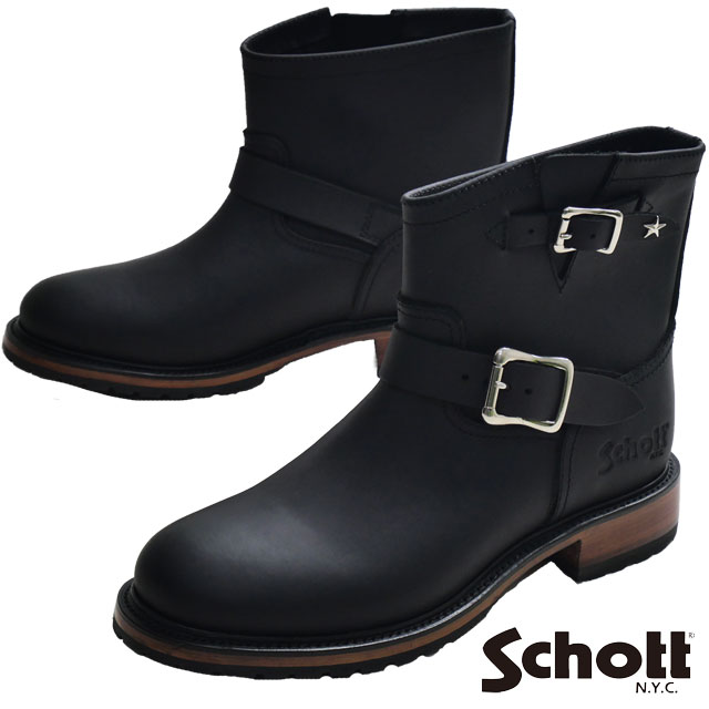 送料無料 エンジニアブーツ ショートブーツ メンズ FW 秋冬 新作 秋新作 冬新作 人気 流行 定番 2025 ショット Schott S25503 ショット ワンスターコレクション 撥水 レザーブーツ 本革 バイカー ライダー ブラック 黒 レザーシューズ 靴