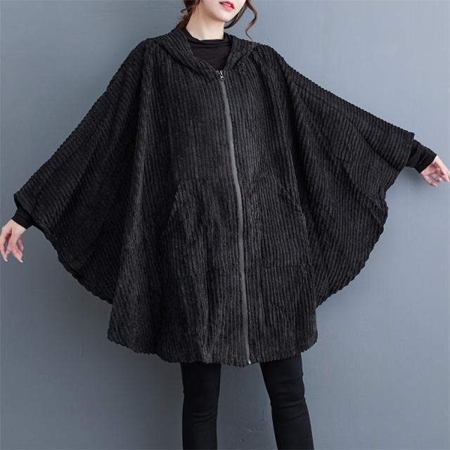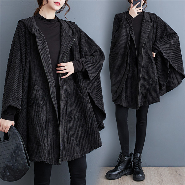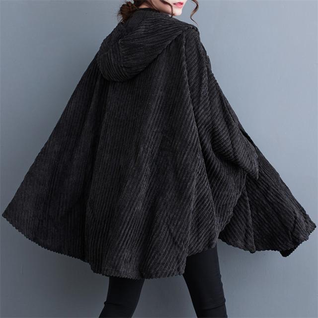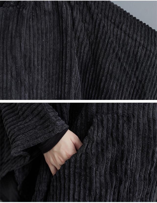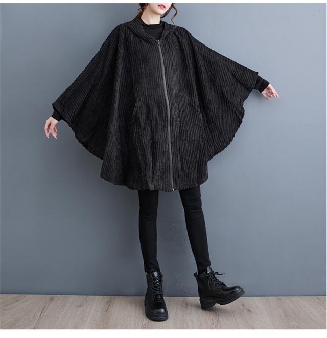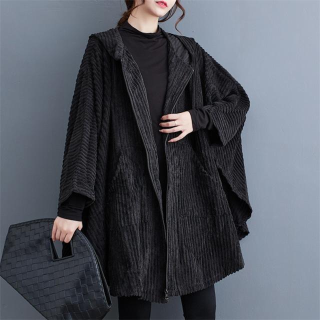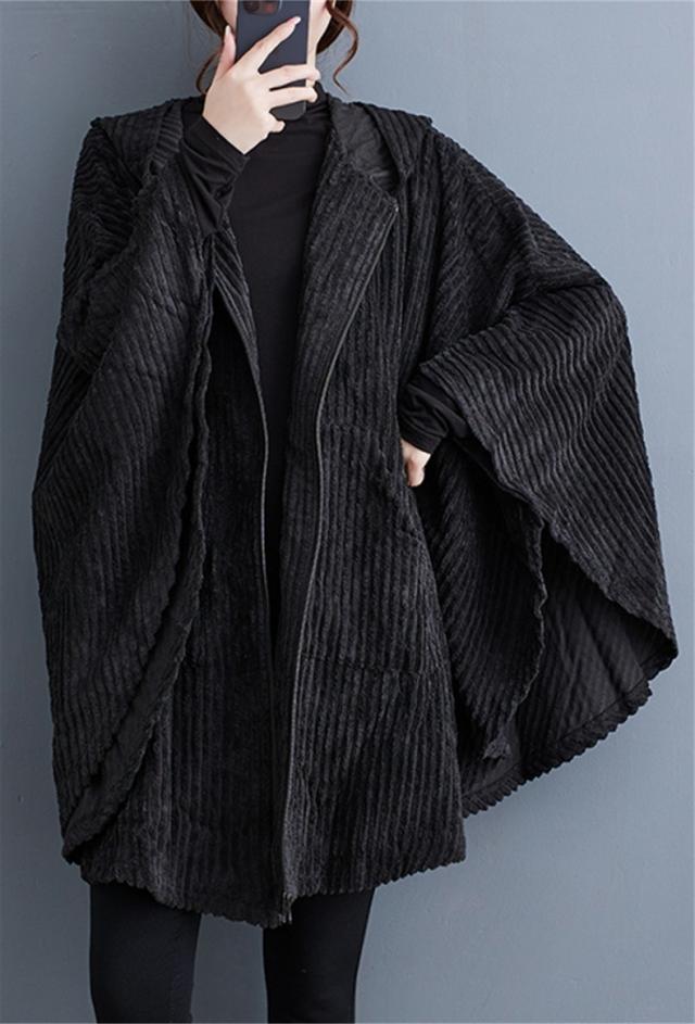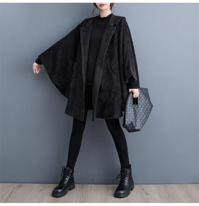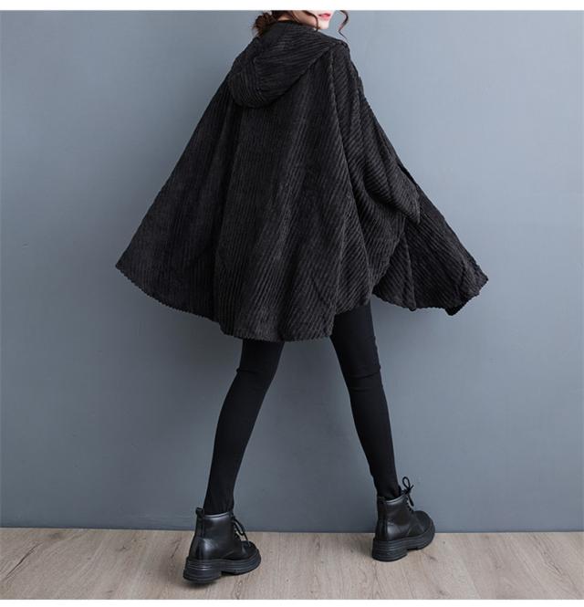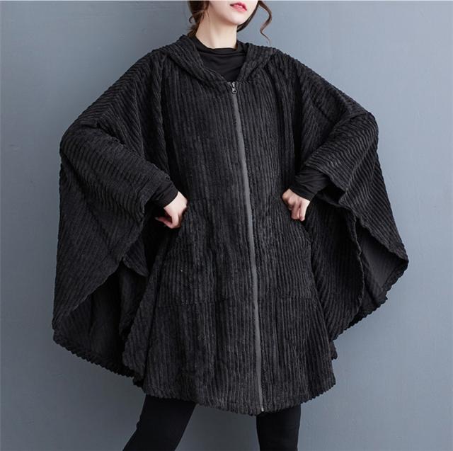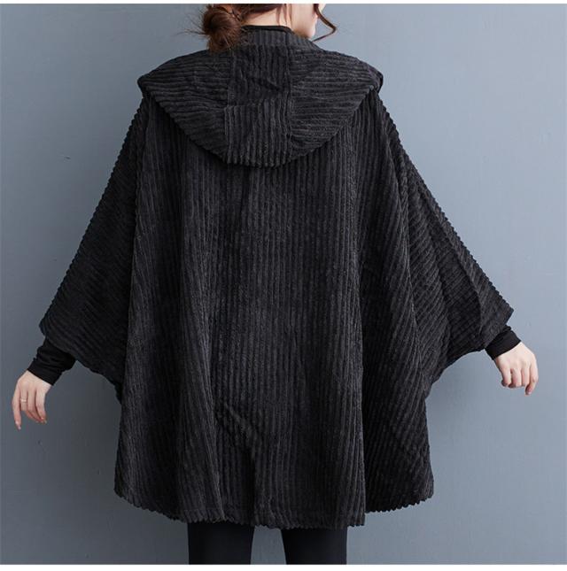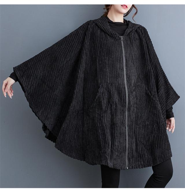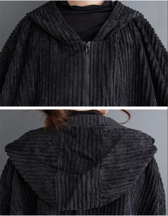 大人アウター レディース トップス 二の腕カバー 羽織り フード付き コーデュロイ あったかい オーバーシルエット 大きいサイズ お尻まですっぽり包む