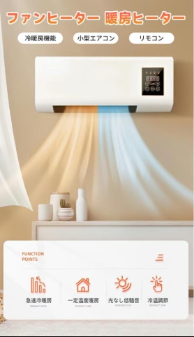 壁掛け 冷温風扇 電気 ファンヒーター 暖房ヒーター リモコン付き 即暖 省エネ コンパクト 冷暖房 壁掛けヒーター 小型エアコン 軽量 寒さ対策 脱衣所