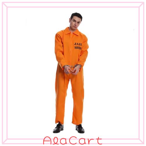 ◆商品名:[Limspace] 囚人服 オレンジ コスプレ 囚人 仮装 コスプレ メンズ ハロウィン 囚人 コスチューム つなぎ 仮装 セット ユニセックス (L)