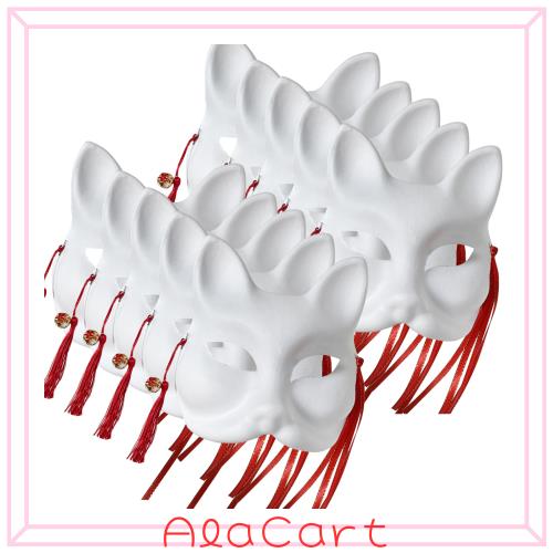 【商品内容】 きつねのお面 (半面 オリジナルお面紙パルプ耐圧紙、無地)レベルアップのゴム紐 花柄 鈴とリボン 付き)。