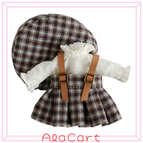 HIGHAWKオビツ11服 OB11 サイズ衣装 11cmボディ用 吊りスカート ベレー帽 長袖 女生 オビツドール オビツ服 お洋服 人形用 チェック柄 3